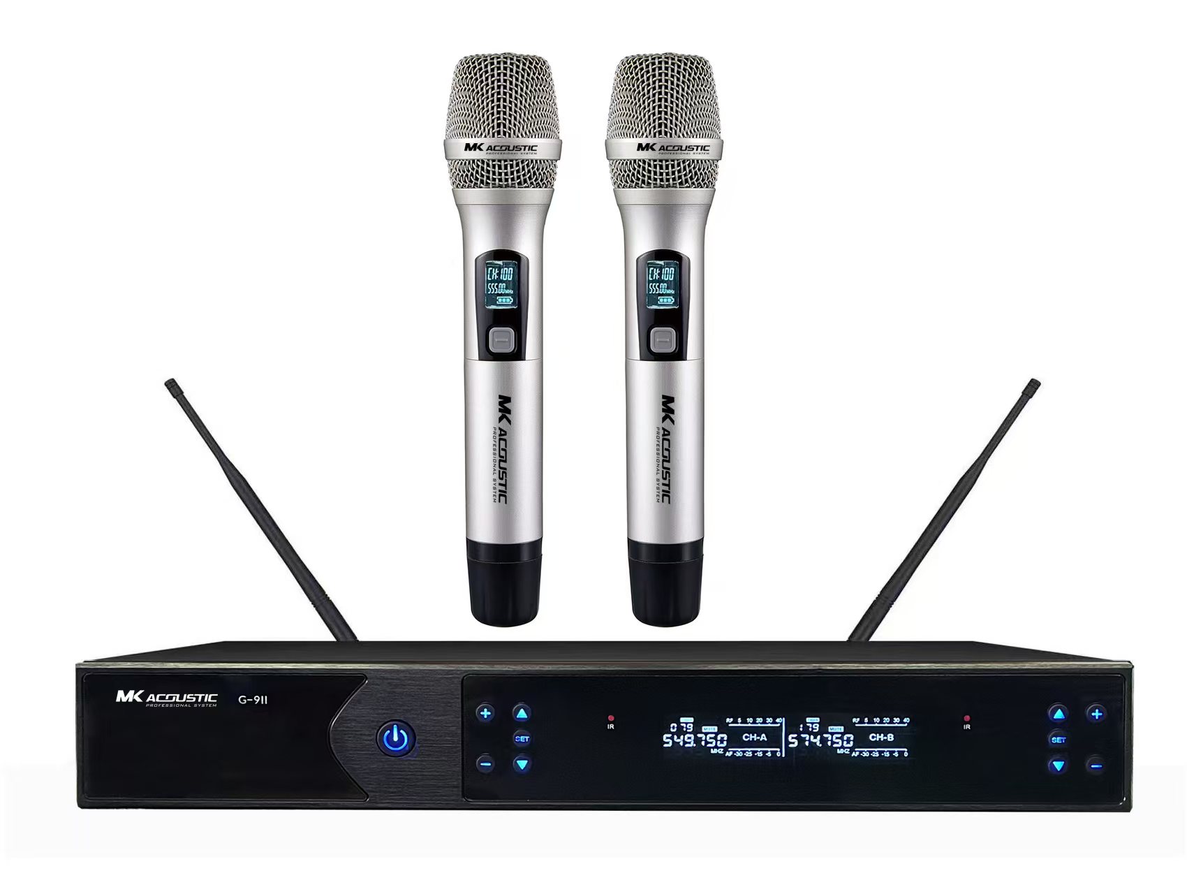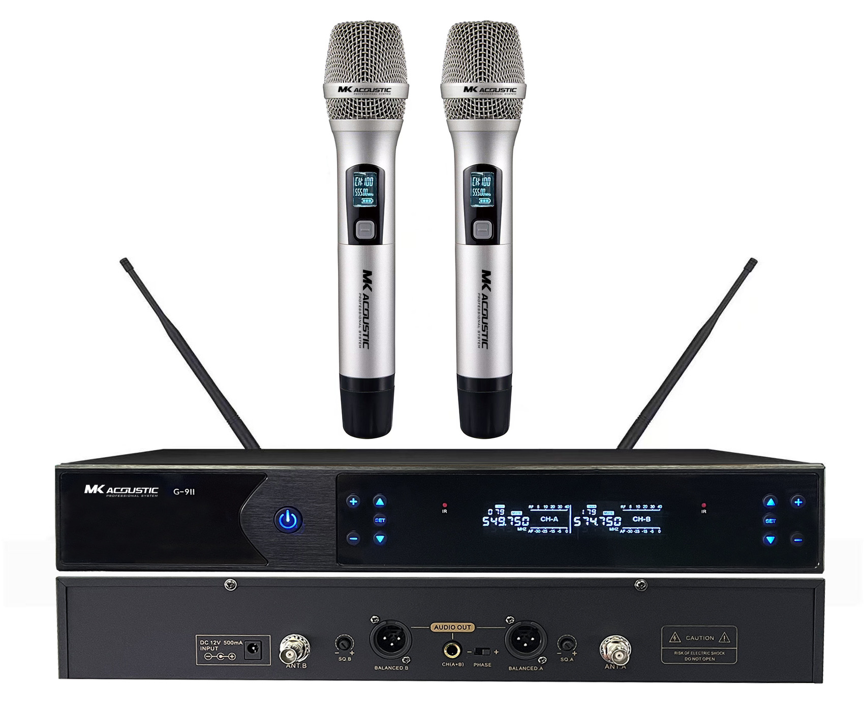 + Một bộ MK G-9 ll gồm 2 tay micro nhẹ, cầm chắc tay, phần thân được mạ crom giúp hạn chế tối đa rỉ sét trong quá trình sử dụng.